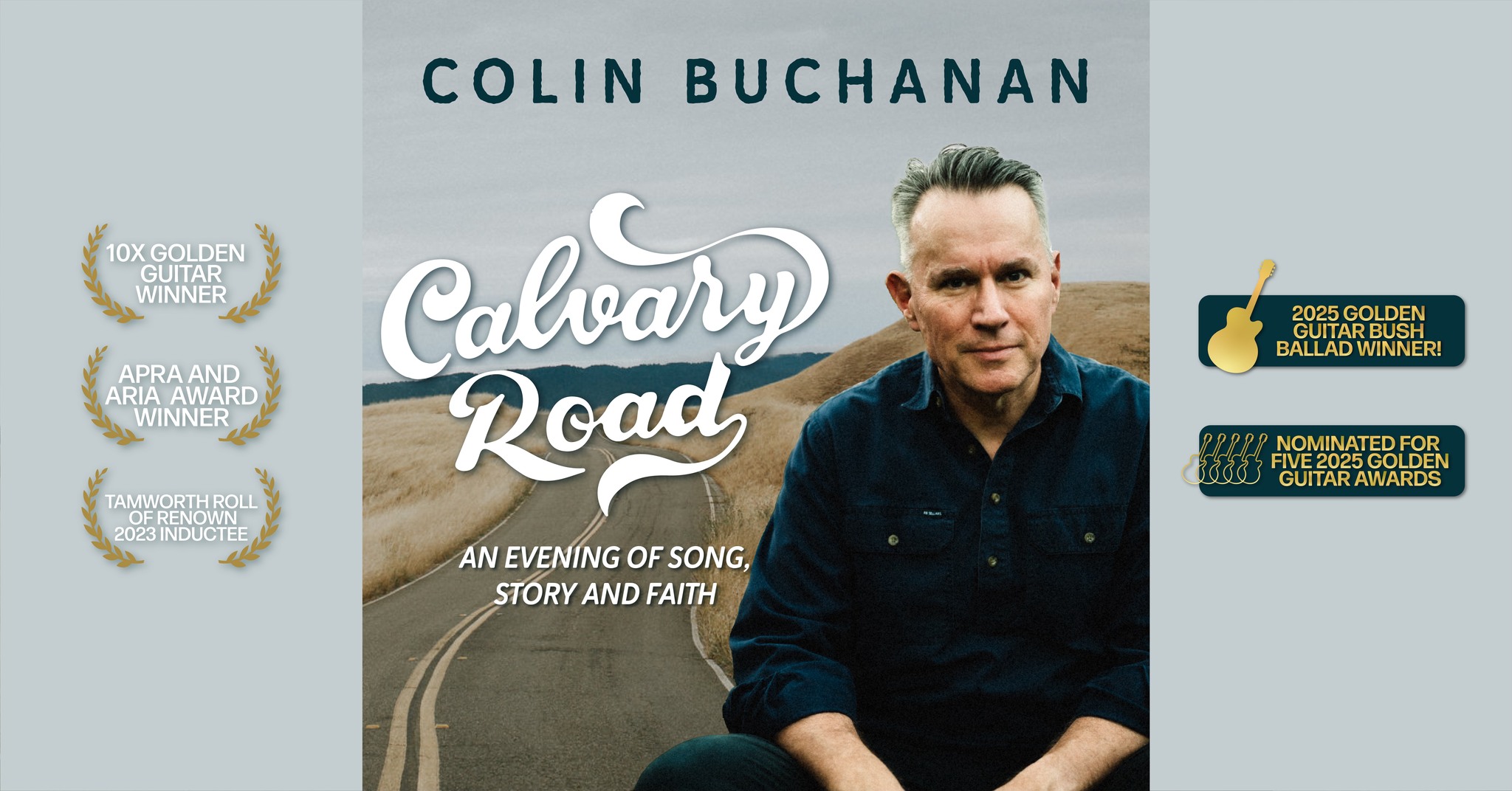 On stage, Calvary Road comes alive as Colin weaves story and song into an intimate evening—by turns entertaining, moving, and deeply engaging. Distinctly Australian yet universally human, the concert celebrates faith with dirt on its boots, offering laughter, reflection, and moments that linger long after the last chord.